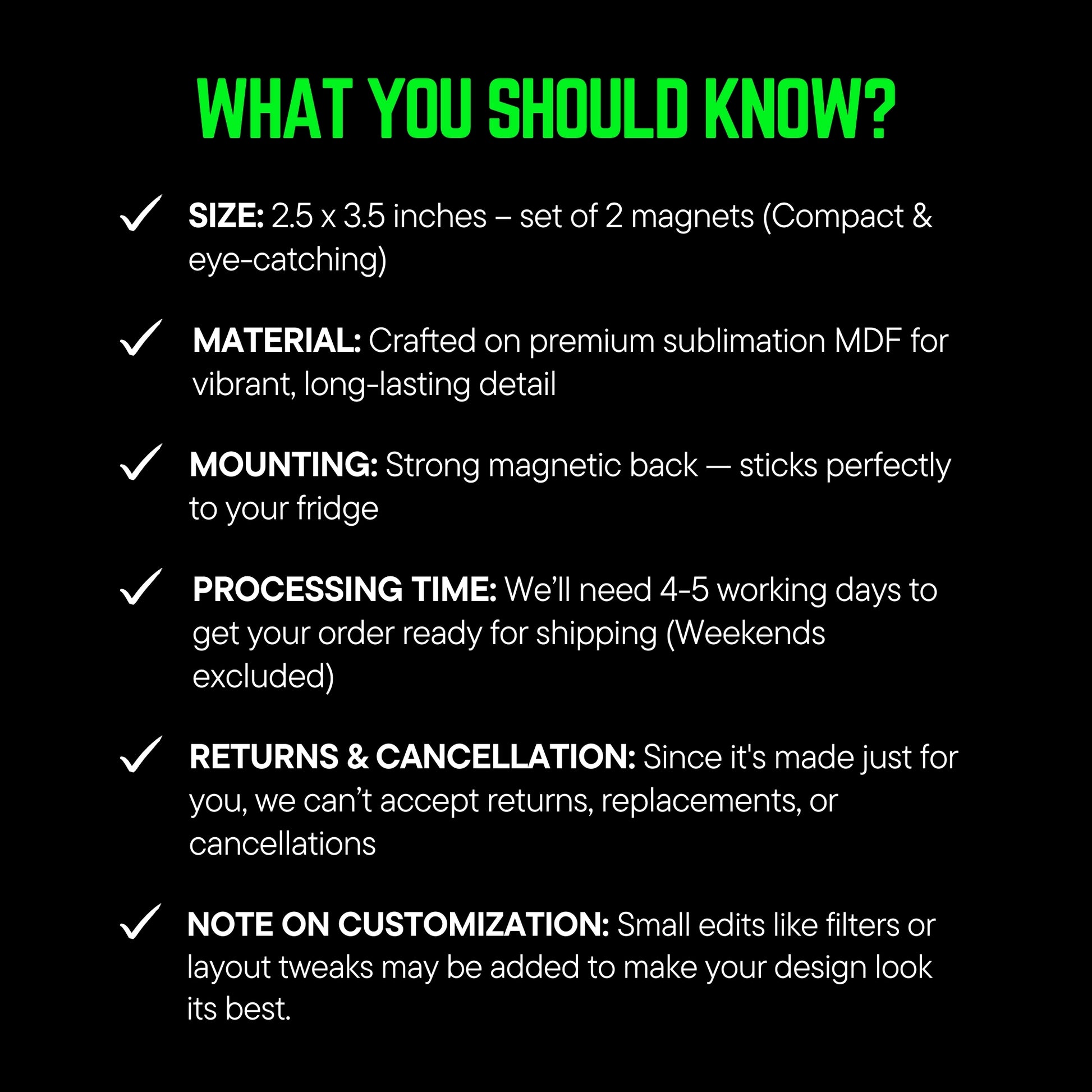Material: Premium MDF (3mm) with strong magnetic backing
